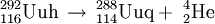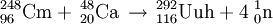 在实验中,当研究人员用钙-48的轰击锔-248时,轰击的生成物中再次诞生了一个116号元素的原子。该原子的核电荷数为116,中子数为176,经47微秒后衰变为Uuq。