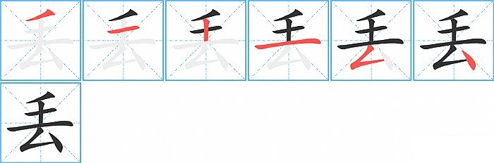 《丢》字的笔顺分步演示图(一笔一画写汉字)