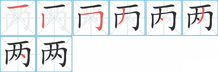 《两》字的笔顺分步演示图(一笔一画写汉字)