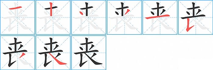 《丧》字的笔顺分步演示图(一笔一画写汉字)