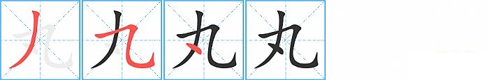 《丸》字的笔顺分步演示图(一笔一画写汉字)