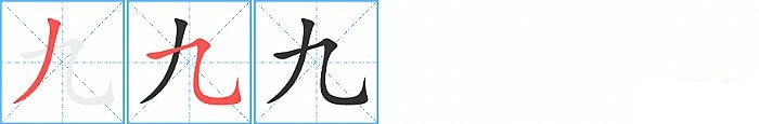 《九》字的笔顺分步演示图(一笔一画写汉字)