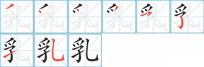 《乳》字的笔顺分步演示图(一笔一画写汉字)