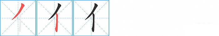 《亻》字的笔顺分步演示图(一笔一画写汉字)