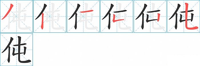 《伅》字的笔顺分步演示图(一笔一画写汉字)