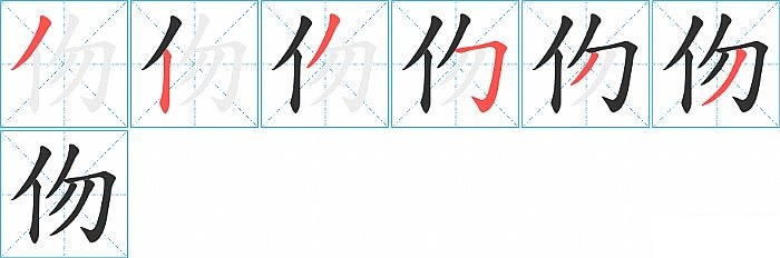 《伆》字的笔顺分步演示图(一笔一画写汉字)