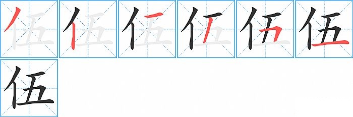 《伍》字的笔顺分步演示图(一笔一画写汉字)