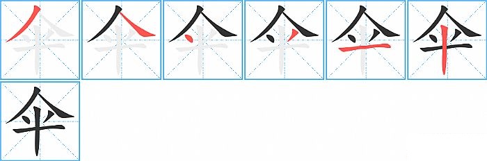《伞》字的笔顺分步演示图(一笔一画写汉字)