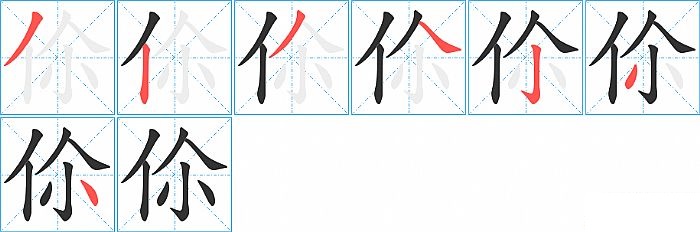 《伱》字的笔顺分步演示图(一笔一画写汉字)