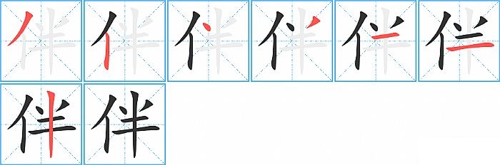 《伴》字的笔顺分步演示图(一笔一画写汉字)