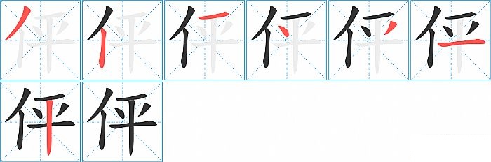 《伻》字的笔顺分步演示图(一笔一画写汉字)