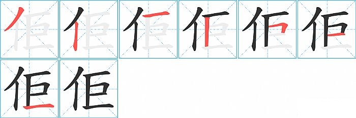《佢》字的笔顺分步演示图(一笔一画写汉字)