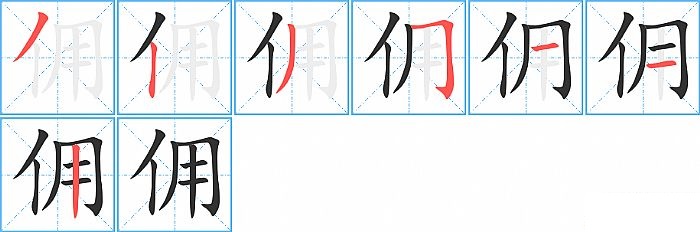 《佣》字的笔顺分步演示图(一笔一画写汉字)