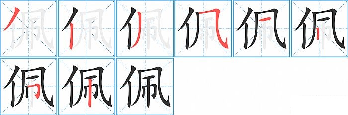 佩是左右结构,佩的部首是“亻”,部外笔画6画,总笔画8画,佩的笔画顺序是“撇、竖、撇、横折弯钩/横斜钩、横、竖、横折钩、竖”。看看“佩”字什么意思 >>