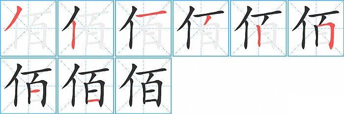 《佰》字的笔顺分步演示图(一笔一画写汉字)