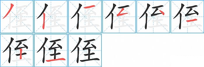 《侄》字的笔顺分步演示图(一笔一画写汉字)
