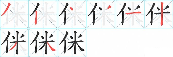 《侎》字的笔顺分步演示图(一笔一画写汉字)
