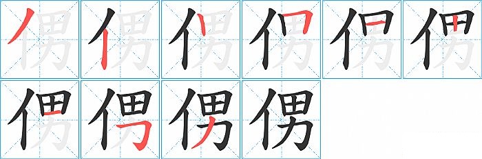 侽是左右结构,侽的部首是“亻”,部外笔画7画,总笔画9画,侽的笔画顺序是“撇、竖、竖、横折、横、竖、横、横折钩、撇”。