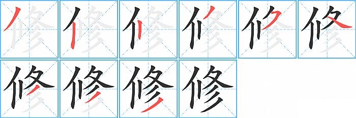 《修》字的笔顺分步演示图(一笔一画写汉字)
