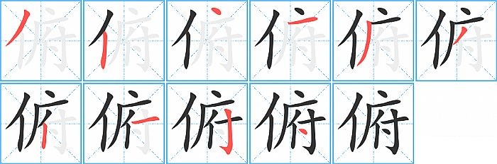 《俯》字的笔顺分步演示图(一笔一画写汉字)