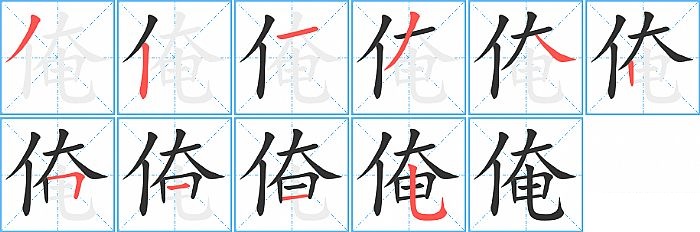 俺是左右结构,俺的部首是“亻”,部外笔画8画,总笔画10画,俺的笔画顺序是“撇、竖、横、撇、捺、竖、横折、横、横、竖弯钩”。看看“俺”字什么意思 >>
