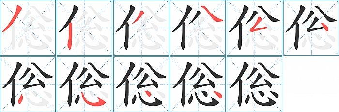 《倊》字的笔顺分步演示图(一笔一画写汉字)