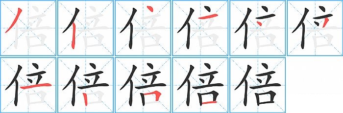 《倍》字的笔顺分步演示图(一笔一画写汉字)