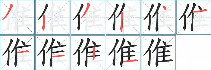 《倠》字的笔顺分步演示图(一笔一画写汉字)