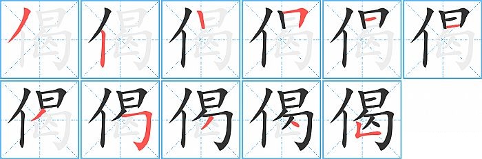 偈是左右结构,偈的部首是“亻”,部外笔画9画,总笔画11画,偈的笔画顺序是“撇、竖、竖、横折、横、横、撇、横折钩、撇、点、竖折/竖弯”。看看“偈”字什么意思 >>