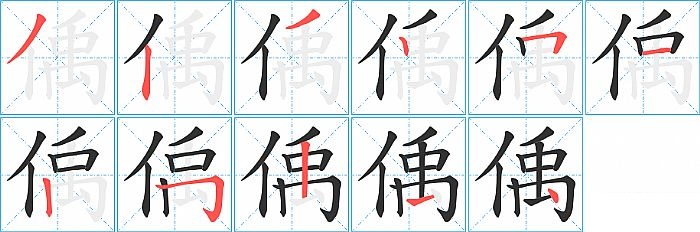 偊是左右结构,偊的部首是“亻”,部外笔画9画,总笔画11画,偊的笔画顺序是“撇、竖、撇、竖、横折、横、竖、横折钩、竖、提、点”。看看“偊”字什么意思 >>