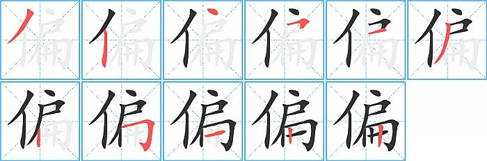 偏是左右结构,偏的部首是“亻”,部外笔画9画,总笔画11画,偏的笔画顺序是“撇、竖、点、横折、横、撇、竖、横折钩、横、竖、竖”。看看“偏”字什么意思 >>