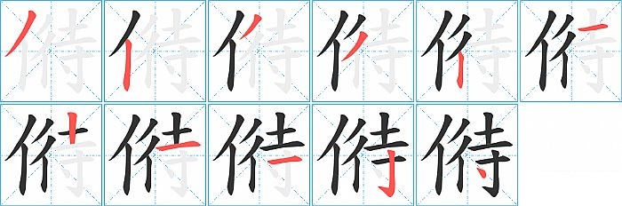 偫是左右结构,偫的部首是“亻”,部外笔画9画,总笔画11画,偫的笔画顺序是“撇、竖、撇、撇、竖、横、竖、横、横、竖钩、点”。看看“偫”字什么意思 >>
