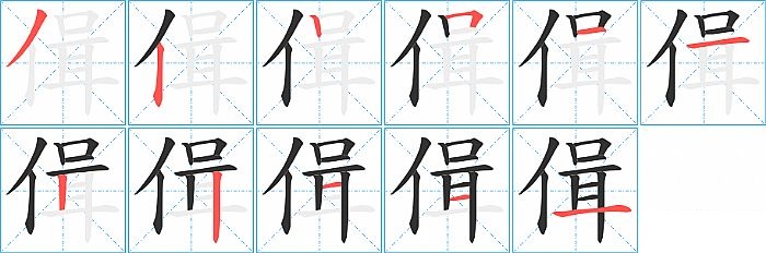 偮是左右结构,偮的部首是“亻”,部外笔画9画,总笔画11画,偮的笔画顺序是“撇、竖、竖、横折、横、横、竖、竖、横、横、横”。看看“偮”字什么意思 >>