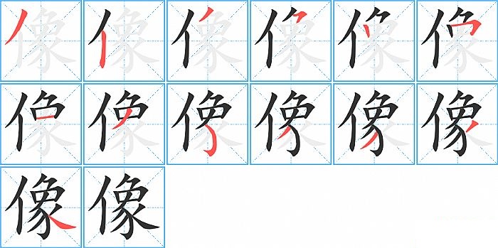 像是左右结构,像的部首是“亻”,部外笔画11画,总笔画13画,像的笔画顺序是“撇、竖、撇、横撇/横钩、竖、横折、横、撇、弯钩、撇、撇、撇、捺”。看看“像”字什么意思 >>