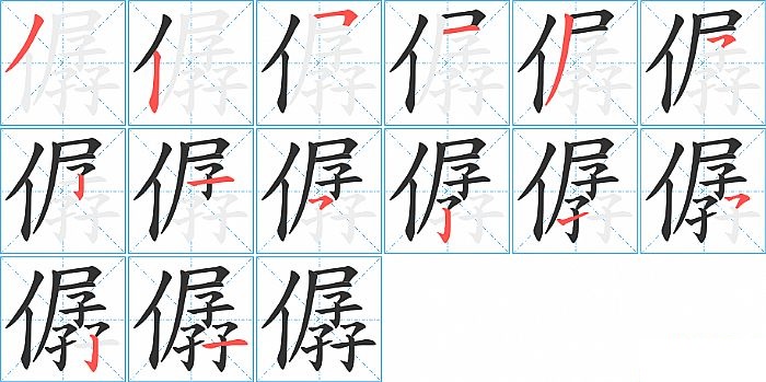 僝是左右结构,僝的部首是“亻”,部外笔画12画,总笔画14画,僝的笔画顺序是“撇、竖、横折、横、撇、横撇/横钩、竖钩、横、横撇/横钩、竖钩、提、横撇/横钩、竖钩、横”。看看“僝”字什么意思 >>