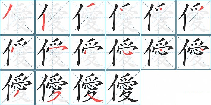 僾是左右结构,僾的部首是“亻”,部外笔画13画,总笔画15画,僾的笔画顺序是“撇、竖、撇、点、点、撇、点、横撇/横钩、点、斜钩、点、点、撇、横撇/横钩、捺”。看看“僾”字什么意思 >>