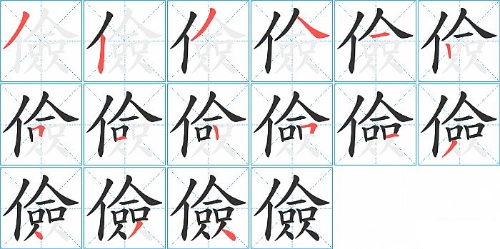 儉是左右结构,儉的部首是“亻”,部外笔画13画,总笔画15画,儉的笔画顺序是“撇、竖、撇、捺、横、竖、横折、横、竖、横折、横、撇、点、撇、点”。看看“儉”字什么意思 >>