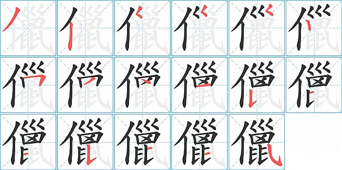 儠是左右结构,儠的部首是“亻”,部外笔画15画,总笔画17画,儠的笔画顺序是“撇、竖、撇点、撇点、撇点、竖、横折、撇、点、横、竖提、点、点、竖提、点、点、斜钩”。看看“儠”字什么意思 >>
