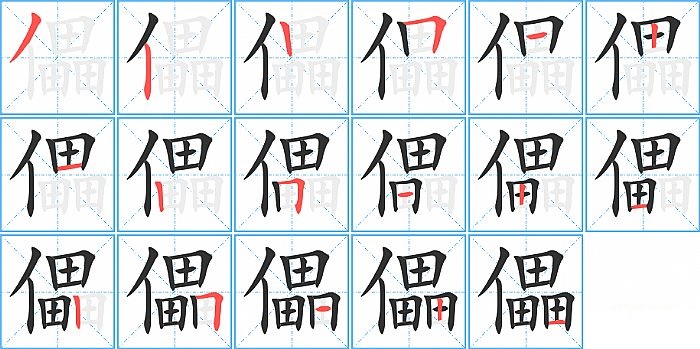 儡是左右结构,儡的部首是“亻”,部外笔画15画,总笔画17画,儡的笔画顺序是“撇、竖、竖、横折、横、竖、横、竖、横折、横、竖、横、竖、横折、横、竖、横”。看看“儡”字什么意思 >>