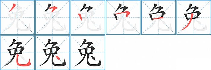 《兔》字的笔顺分步演示图(一笔一画写汉字)