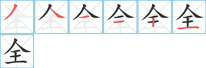 《全》字的笔顺分步演示图(一笔一画写汉字)