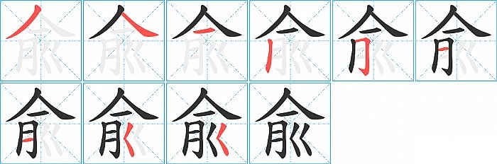 《兪》字的笔顺分步演示图(一笔一画写汉字)