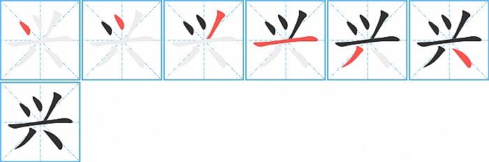 《兴》字的笔顺分步演示图(一笔一画写汉字)