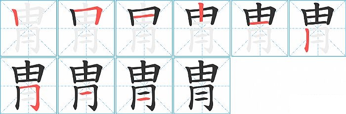 《冑》字的笔顺分步演示图(一笔一画写汉字)