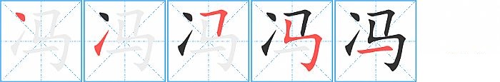 《冯》字的笔顺分步演示图(一笔一画写汉字)