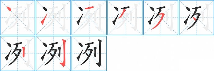 《冽》字的笔顺分步演示图(一笔一画写汉字)