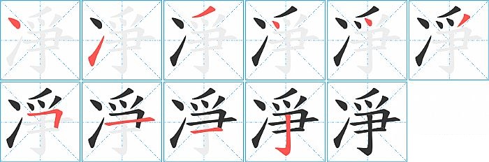 《凈》字的笔顺分步演示图(一笔一画写汉字)