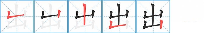 《出》字的笔顺分步演示图(一笔一画写汉字)