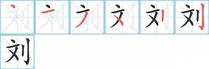 《刘》字的笔顺分步演示图(一笔一画写汉字)