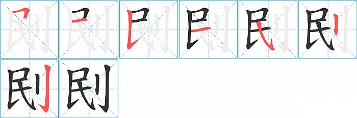 《刡》字的笔顺分步演示图(一笔一画写汉字)